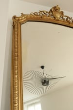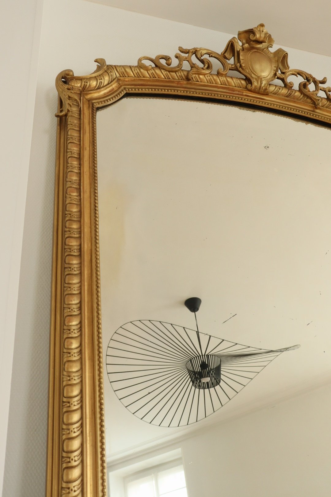 Sublime Miroir Napoléon III feuille d’or encore légèrement visible sur le cadre intérieur, repatiné afin de lui redonner un coup d’éclat, cadre présentant des traces du temps, légèrement piquée et rayée.