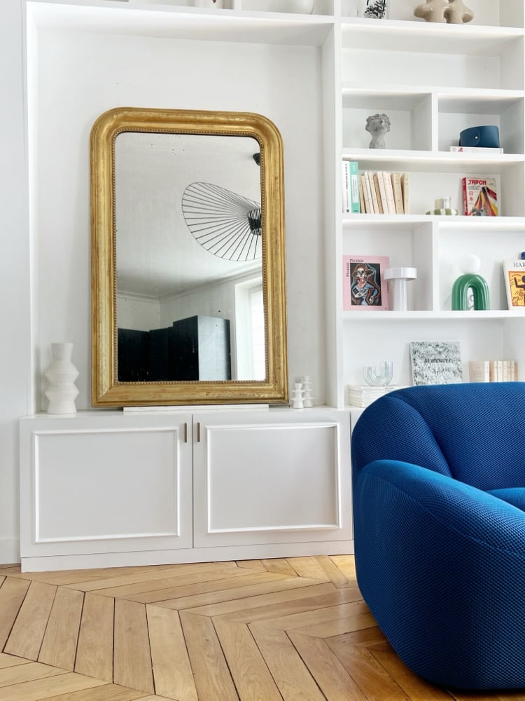 Sublime Louis Philippe classique perlé à la feuille d’or vieillie par le temps, époque début 20ème fin 19ème,glace d’origine piquée et rayée