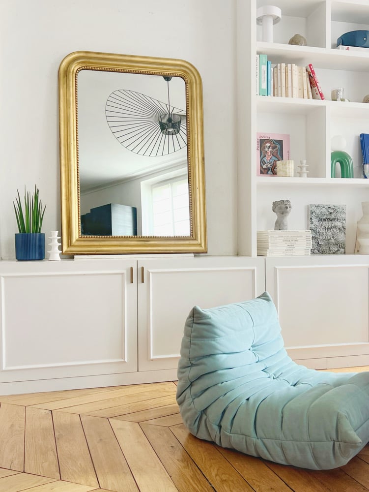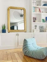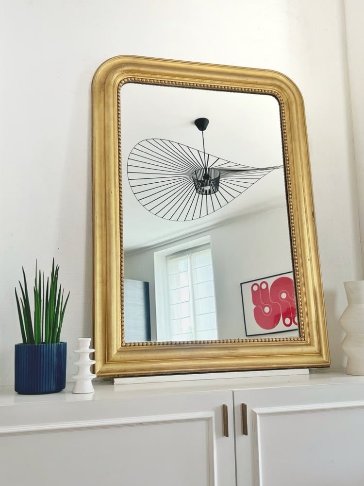 Sublime Louis Philippe classique perlé à la feuille d’or vieillie par le temps, époque début 20ème fin 19ème,glace d’origine piquée et rayée