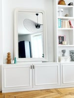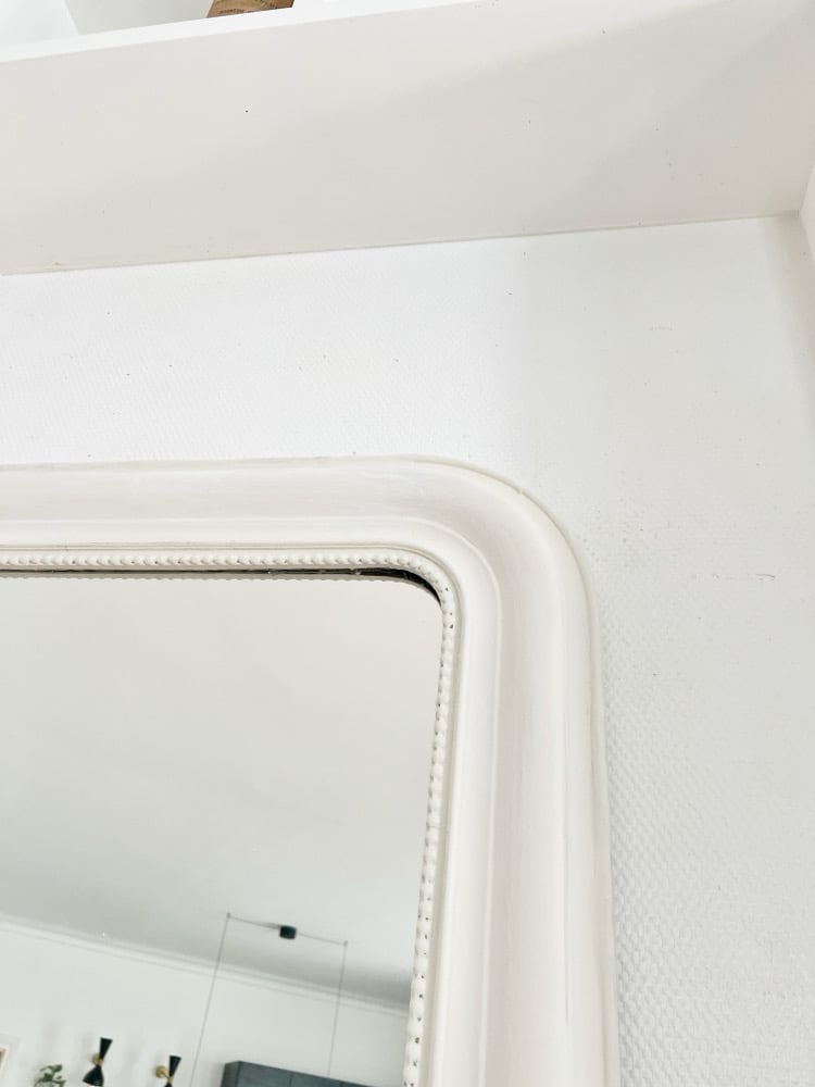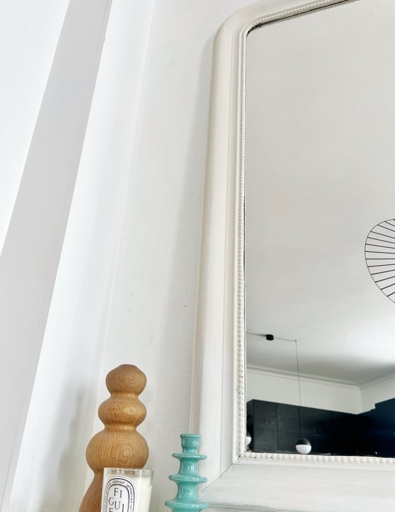 Miroir louis Philippe entièrement repatiné en blanc mat, époque fin 19ème début 20eme, glace récente en parfait état .