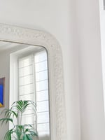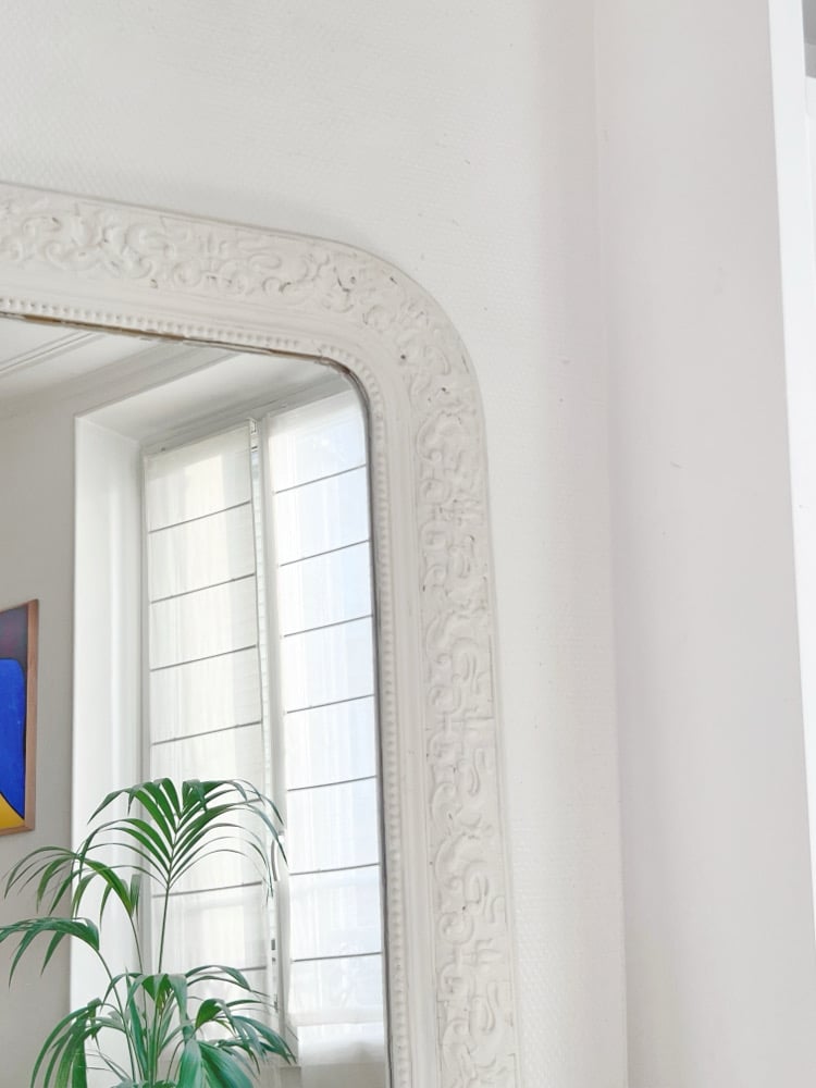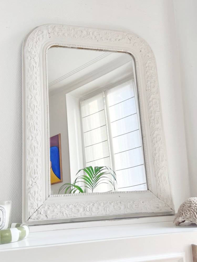 Miroir louis Philippe entièrement repatiné en blanc mat, époque fin 19ème début 20eme, glace récente en très bon état .