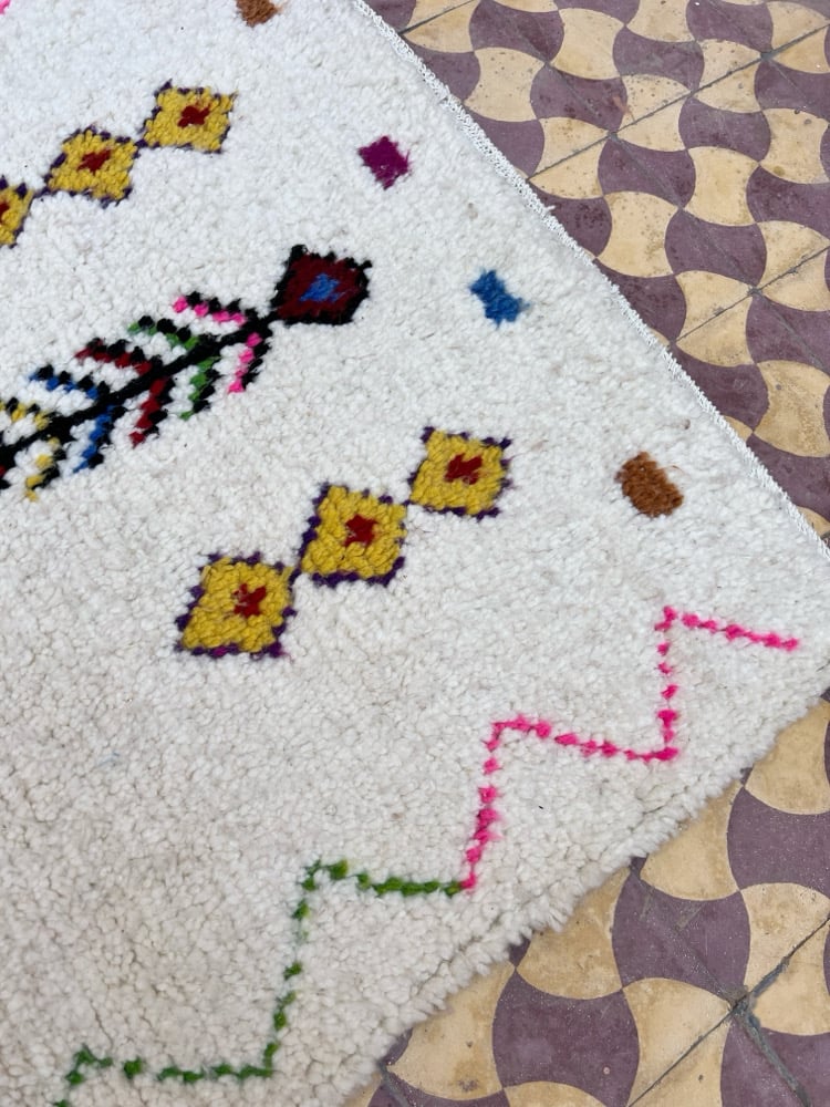 Conseil d’entretien; les tapis berbères sont des pièces simples à entretenir il suffit de passer l’aspirateur régulièrement. Nous conseillons de les secouer, retourner tous les mois afin d’éliminer en profondeur les poussières.